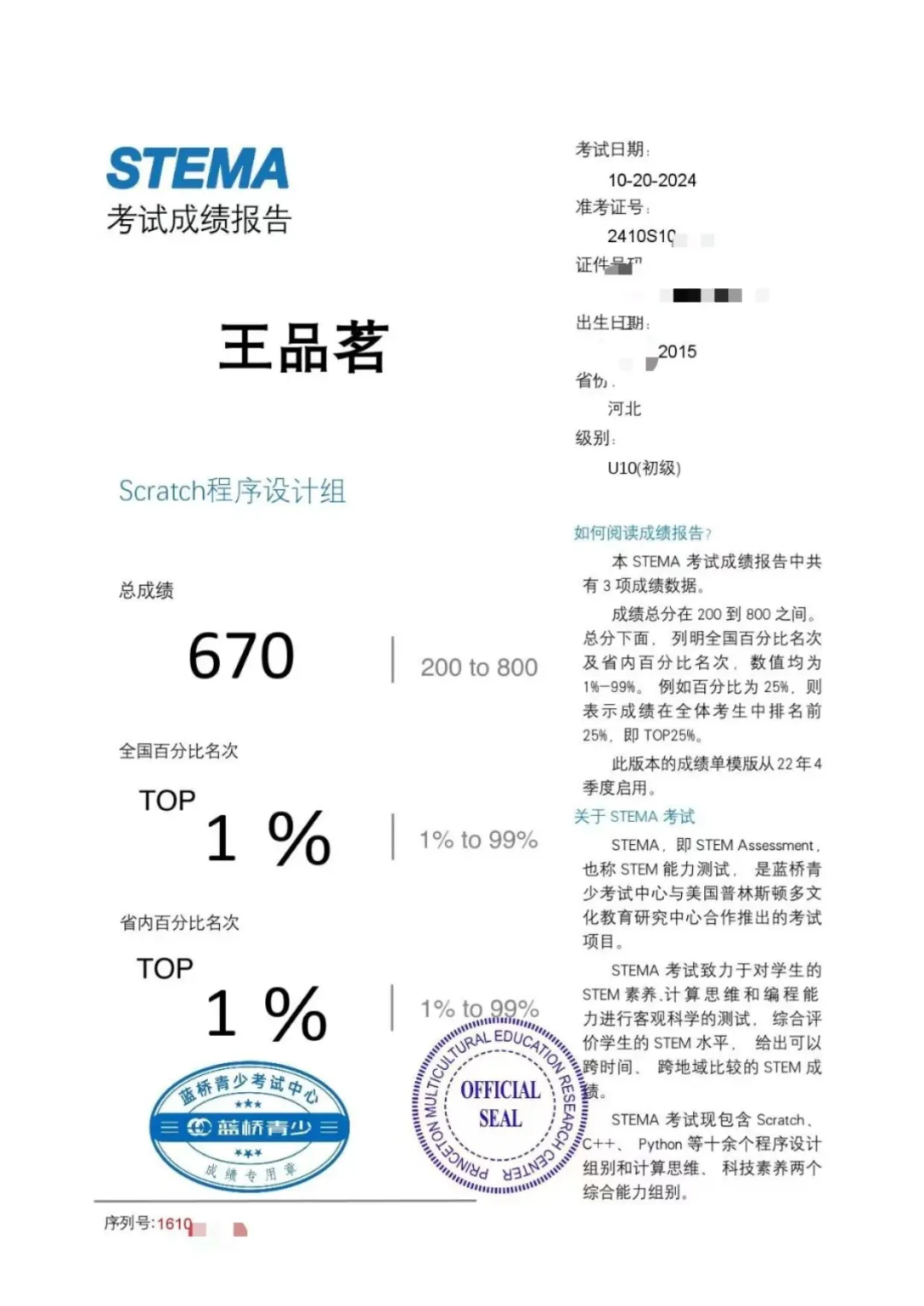 STEMA考试结果:电子成绩单